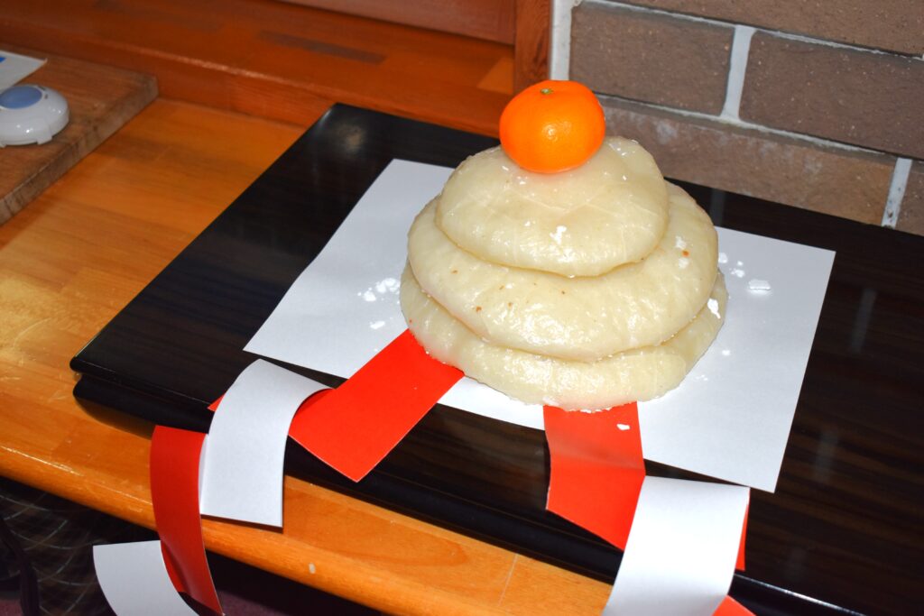 (※鏡餅の茶色いつぶつぶは臼が少し欠けてしまったものです。搗いたお餅は鏡餅専用で食しておりませんのでご安心ください)